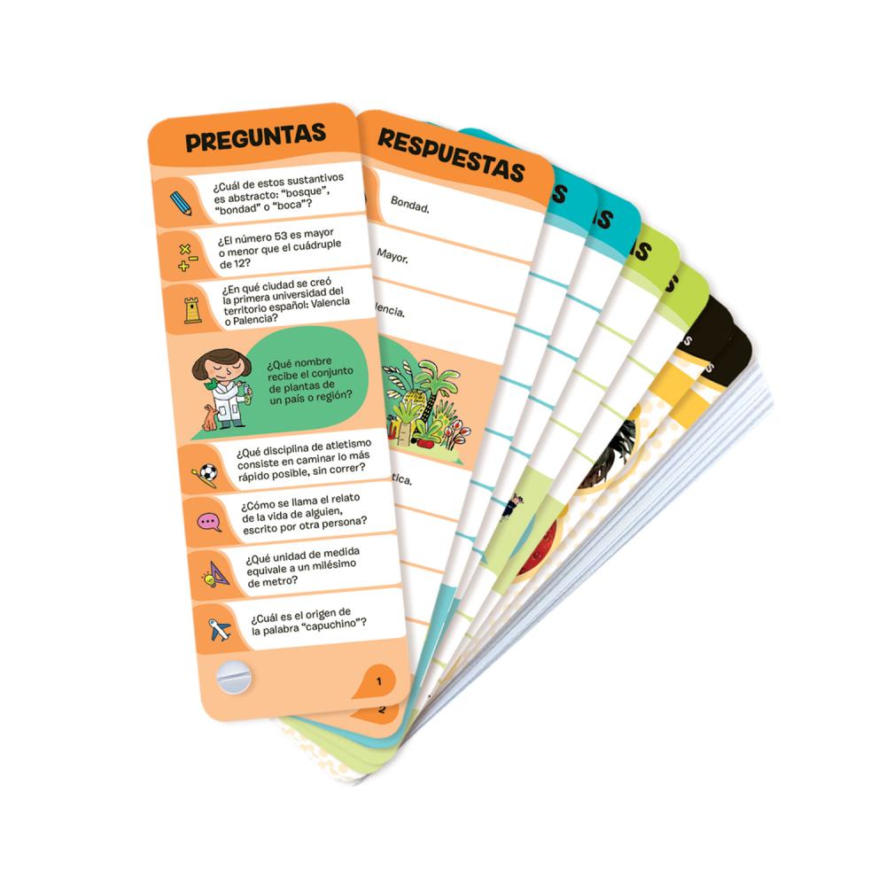 La clásica colección Abremente de preguntas y respuestas llega renovada, con nuevo nombre, divertidos personajes y contenido actualizado para aprender jugando allá donde estés. Su formato en abanico es ideal para que lo lleves allá donde vayas, ¡juega en solitario o desafía a quien tengas al lado!