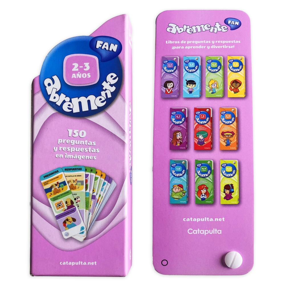 La colección Abremente Fan dispone de títulos para niños y niñas desde los 2 años hasta los 12, y contiene preguntas sobre todo tipo de temas orientados a cada edad. Facilita el aprendizaje y afianzamiento de conceptos a la vez que supone un juego desafiante y muy divertido, perfecto para cualquier momento de espera.