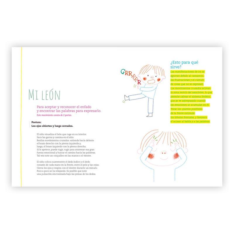 Inspirados en el brain gym, estos libros proponen cuatro ejercicios de relajación, con movimientos y palabras, destinados a los niños pequeños. Cada ejercicio se presenta en dos partes: primero, mediante una explicación a los padres o profesores en la que se detalla cómo hacer el ejercicio y para qué sirve; segundo, a través de un texto ilustrado, para leer con los niños, acerca de cada relajación. En este nuevo título los niños aprenderán a entender qué es el enfado y controlar mejor sus emociones. Para ayudar a los más pequeños a conciliar cuerpo y mente y encontrar la calma
