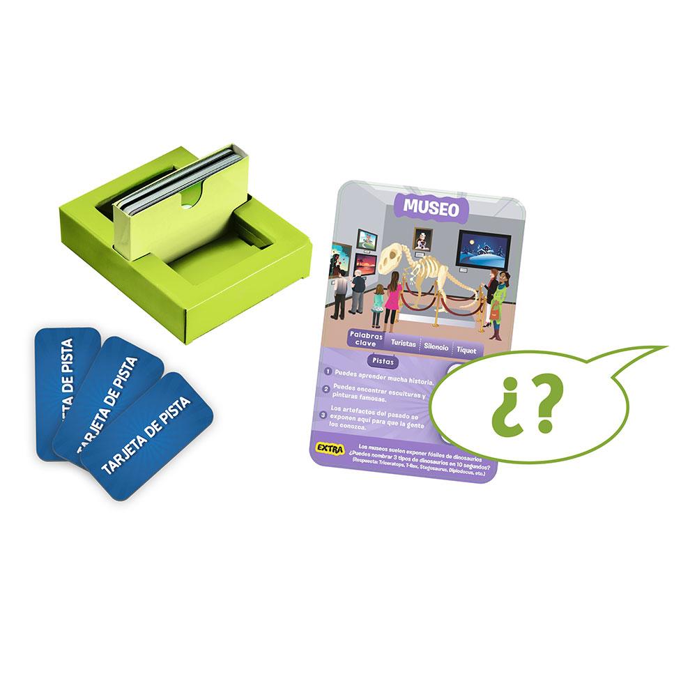 El jugador o jugadora podrá realizar 10 preguntas para conseguir adivinar el lugar que indica la carta de juego, y de esa manera irá ganando tarjetas, ¡quien consiga 7 gana la partida!