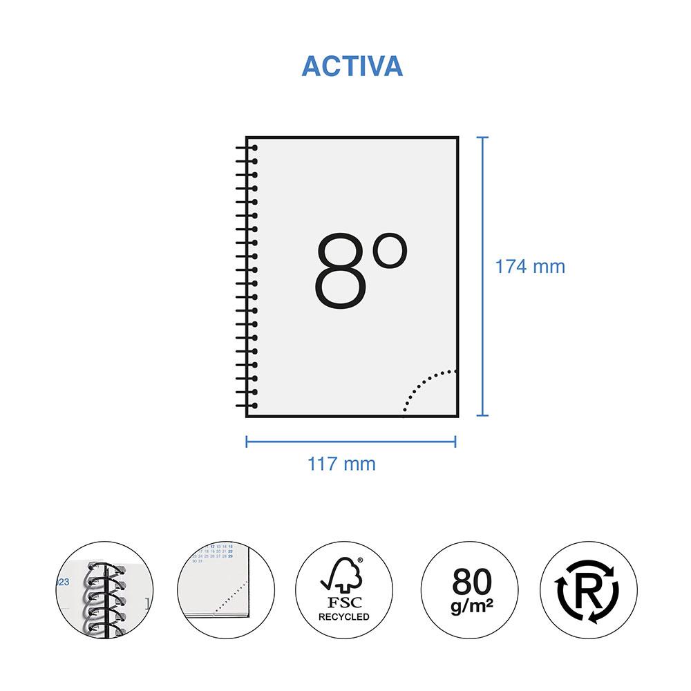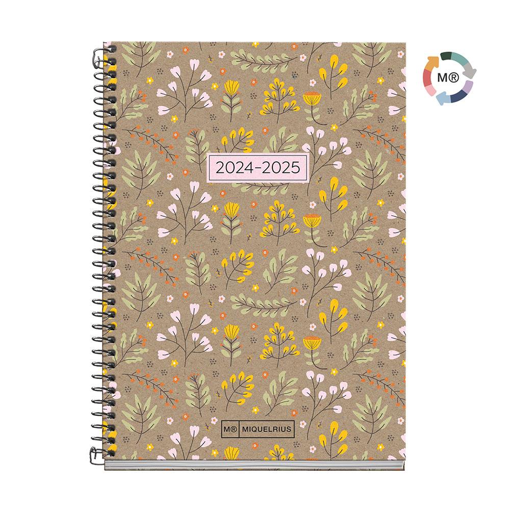 Agenda espiral activa leaves semana vista 2024-2025
