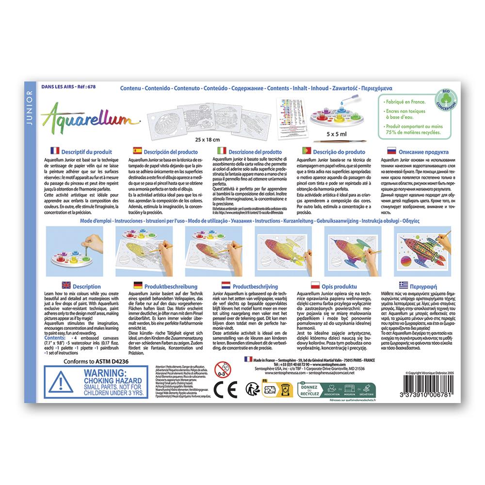 ¡Con un par de gotas de pintura, todos los niños y niñas podrán crear auténticas obras maestras! Aquarellum Junior es una técnica de pintura que permitirá a todas las edades crear fácilmente hermosas obras de arte. Aquí está su receta para el éxito : Papel vitela grueso y de alta calidad, perfecto para pintar acuarela ya que el papel no se arruga. Ilustraciones con contornos de enmascarado que aparecerán mágicamente en cada pincelada. ¡Evitando que la pintura se adhiera a las superficies de enmascarado para que finalmente los niños solo puedan pintar dentro de las líneas!