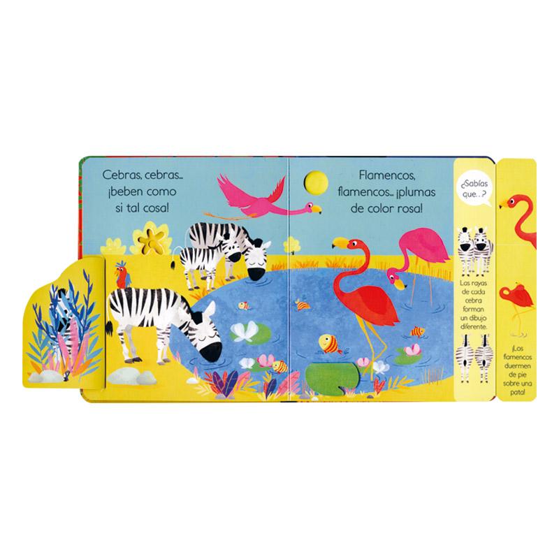 Los animales de la selva te dan la bienvenida en este libro con el que podrás jugar a localizarlos en cada escena y a la vez conocer algunos hechos curiosos de estos animales. Un mundo maravilloso que te gustará de verdad, ¡con muchas cosas para explorar y descubrir!