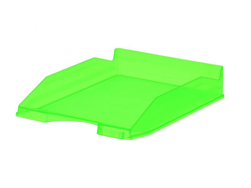 Realizada en poliestireno resistente en color verde flúor translúcido, permite apilar sobre ella más bandejas del mismo modelo y dispone de porta etiquetas, ¡añade un toque de color a tu escritorio!
