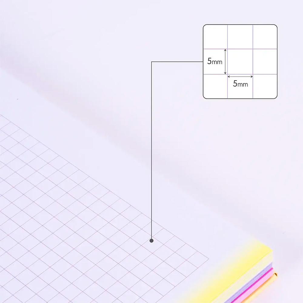 Contenido: 1 bloc A4 de 90 hojas con cuadrícula 5x5 y cubierta en color amarillo degradado.