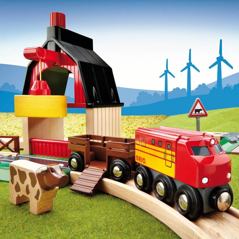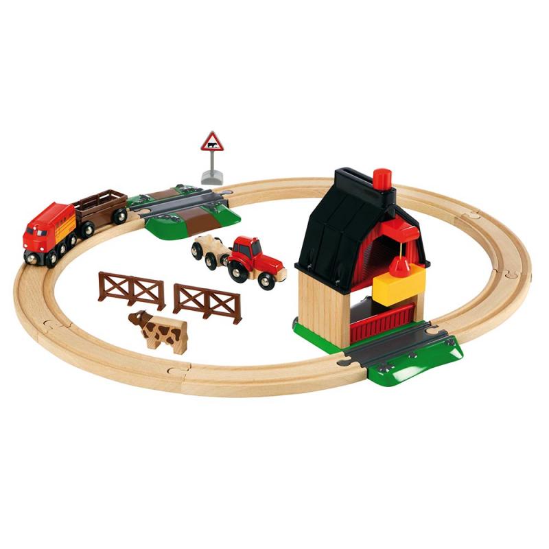 Saca el ingeniero ferroviario que llevas dentro y completa tu circuito con todos los accesorios para que tu creatividad comience a volar. La vaca y el caballo están fuera pastando mientras llevas la carga de heno con el tractor hasta el establo, ¿escuchas al tren llegar? Acércate a la estación a ver qué sucede, ¡imagina mil y una aventuras con este completo conjunto! Recuerda que si dispones de más conjuntos o accesorios de la marca Brio, podrás combinarlos para crear un mundo lleno de vagones de tren, vías de madera y, sobre todo, ¡imaginación!