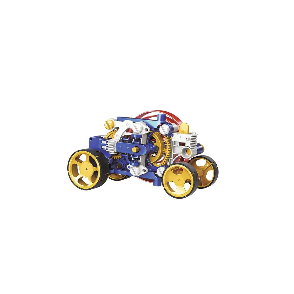 ¿Sabes cómo se produce el movimiento en un cochecito de cuerda, o de dónde viene el tic-tac de un reloj? Construye uno a uno los tres modelos a los que podrás dar vida, y conviértete en experto en el funcionamiento del resorte de torsión en espiral, ¡ese es el secreto del movimiento de este genial set!
