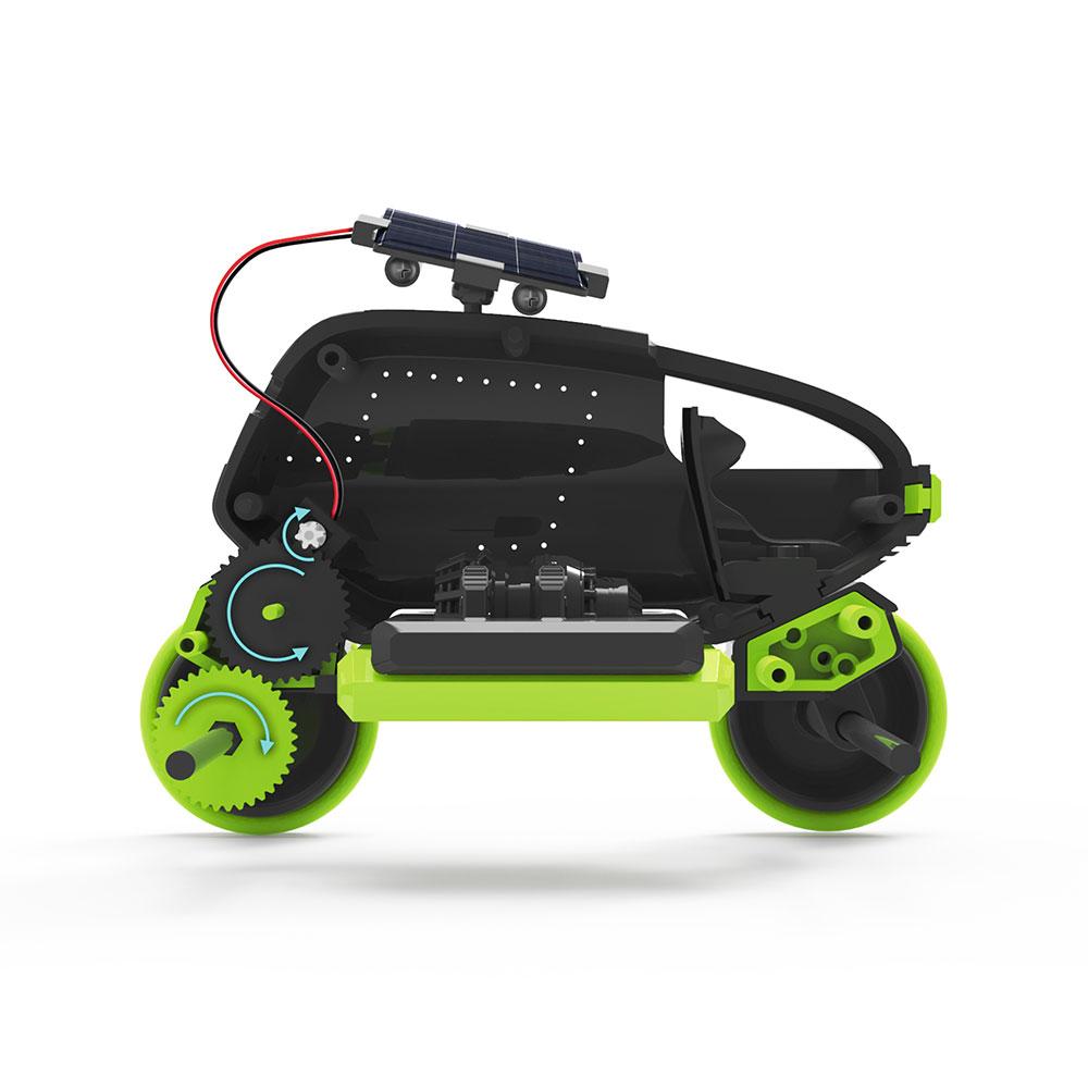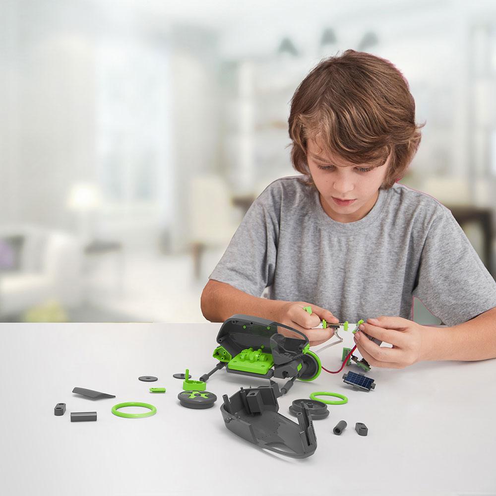 Este set incluye más de 60 piezas para que puedas construir un coche con aspecto espacial. Para hacerlo funcionar, solo deberás conectar la placa solar al motor, y observar cómo la luz solar acumulada en la placa se transforma en movimiento, ¡es perfecto para aprender conceptos sobre mecánica y energías renovables!