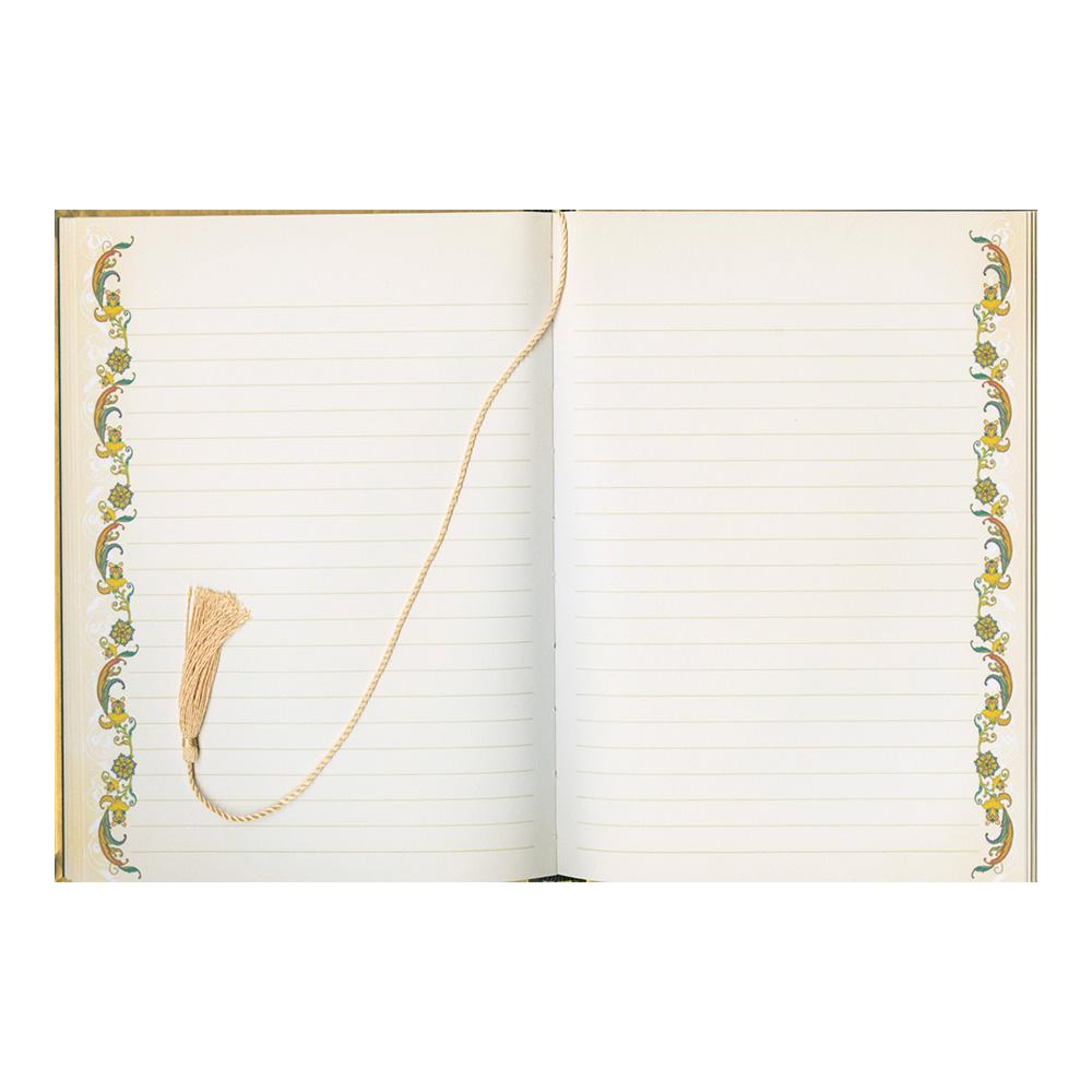 Cuaderno Boncahier con encuadernación en tapa dura con golpe seco. Dispone de hojas con rayado horizontal y marcapáginas con borla.