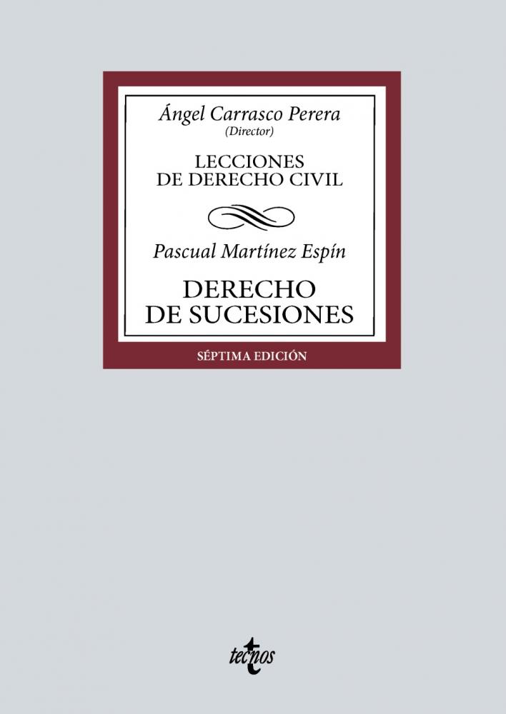 El Derecho de Sucesiones escrito por el Catedrático Martínez Espín pretende ser un texto de referencia tanto para estudiantes de Grado en Derecho y Doble Grado (Derecho y otras titulaciones), como para profesionales -sean jurídicos o no-. Esta obra tiene por objeto ofrecer una visión completa, didáctica y actual sobre los aspectos esenciales del Derecho de Sucesiones. La obra no se limita a ser un manual al uso, sino que pretende contar de una manera sistemática los contenidos básicos de la sucesión mortis causa. Para lograr este objetivo, se han utilizado técnicas diferentes. En primer lugar, se reduce en la medida de lo posible la glosa de normas jurídicas en el cuerpo de texto de enseñanza, gracias a los cuadros que preceden al desarrollo de cada epígrafe. En segundo lugar, se atiende a lo esencial, sin disquisiciones doctrinales o jurisprudenciales. En tercer lugar, cada epígrafe está compuesto por varios párrafos con un título que sintetiza la idea central, con la finalidad de que el lector distinga los contenidos de cada pregunta. En cuarto lugar, las cuestiones más relevantes se contienen en esquemas. Por último, en un cuadro final se sintetizan los conceptos y reglas jurídicas más significativas de cada lección.