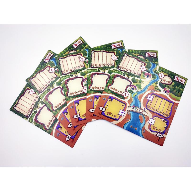 • La caja tiene unas medidas de 20 x 20 x 5,5 centímetros, y contiene: 5 tableros de parque de dos lados; 60 meeples de dinosaurio; 1 dado; 1 bolsa de tela y guía de juego.