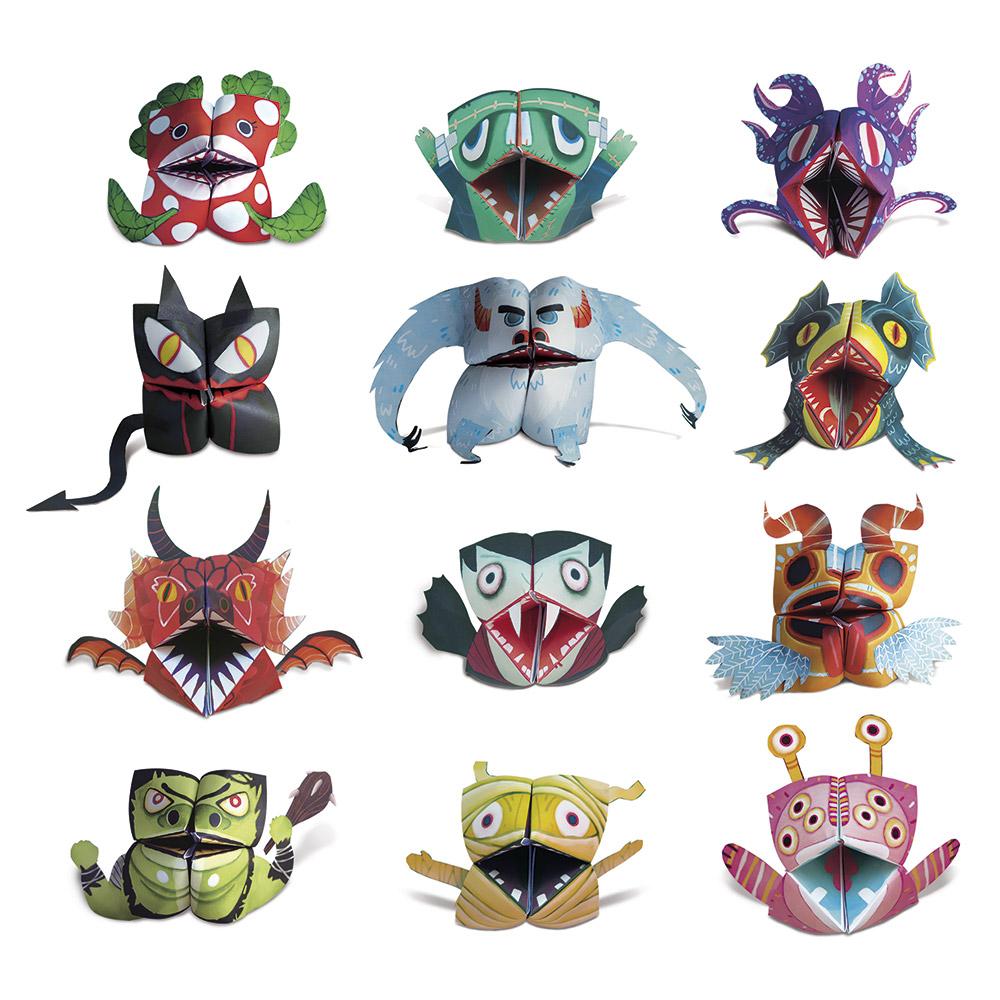 Incluye 12 láminas ilustradas para hacer origami de monstruos e instrucciones.