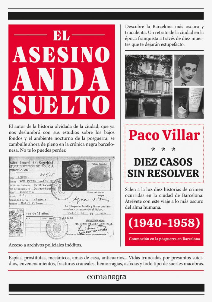 Descubre la Barcelona más oscura y truculenta. Diez crímenes de diferentes tipologías, pertenecientes a una época concreta, el franquismo, de la cual son un claro reflejo. En su momento, algunos tuvieron más repercusión mediática que otros, pero esa repercusión se fue apagando a medida que la investigación policial no llegaba a buen puerto y al final quedaron olvidados, arrinconados y archivados y nunca más se volvió a hablar de ellos. Paco Villar és uno de los principales autores de la historia olvidada de la ciudad, que ya nos deslumbró en sus estudios sobre los bajos fondos y el ambiente nocturno en la posguerra, se zambulle ahora de pleno en la crónica negra barcelonesa. En Comanegra ha publicado La Criolla. La puerta dorada del Barrio Chino.