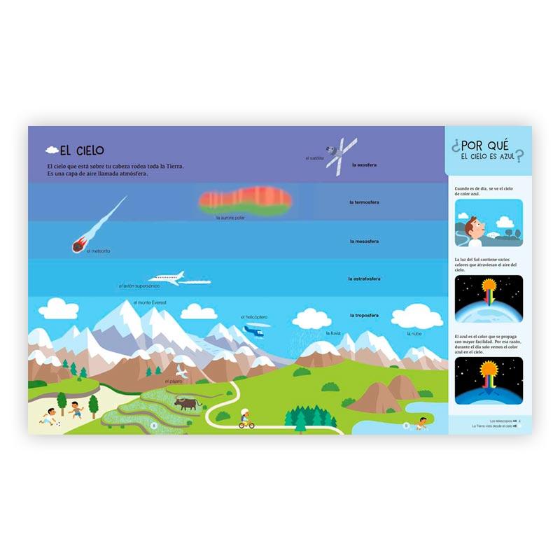 Esta pequeña enciclopedia temática, además de aportar un extenso vocabulario visual, permite descubrir cómo se forma el arco iris, de qué se compone una estrella fugaz, cómo se come en el espacio o quién fue el primer hombre que pisó la luna. Una colección dirigida a que los lectores más curiosos para que puedan aprender través de información amena, clara y con muchas ilustraciones.