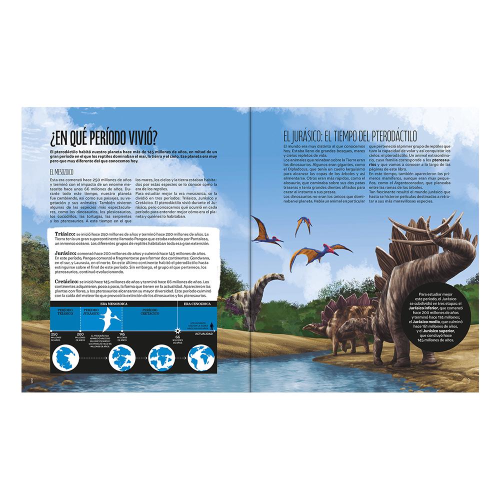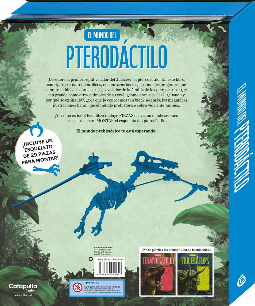 ¡Descubre al primer reptil volador del Jurásico: el Pterodáctilo! En este libro, con rigurosos datos científicos, encontrarás las respuestas a las preguntas que siempre te hiciste sobre este sagaz volador de la familia de los pterosaurios: ¿era tan grande como otros animales de su era?, ¿cómo eran sus alas?, ¿cuándo y por qué se extinguió?, ¿por qué lo conocemos tan bien? Además, las magníficas ilustraciones harán que el mundo prehistórico cobre vida ante tus ojos. ¡Y eso no es todo! Este libro incluye piezas de cartón e indicaciones paso a paso para montar el esqueleto del pterodáctilo. El mundo prehistórico te está esperando.