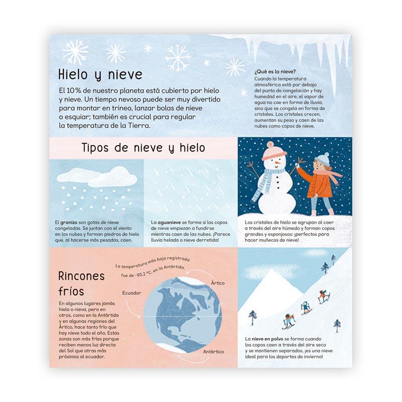 Este libro presenta los fenómenos atmosféricos de manera lúdica y breve. Ofrece la información necesaria sin perder los datos más importantes. Además, lleva ilustraciones a toda página e incluye una rueda que al girarla te sorprenderá con más información práctica y visual sobre aspectos del clima.