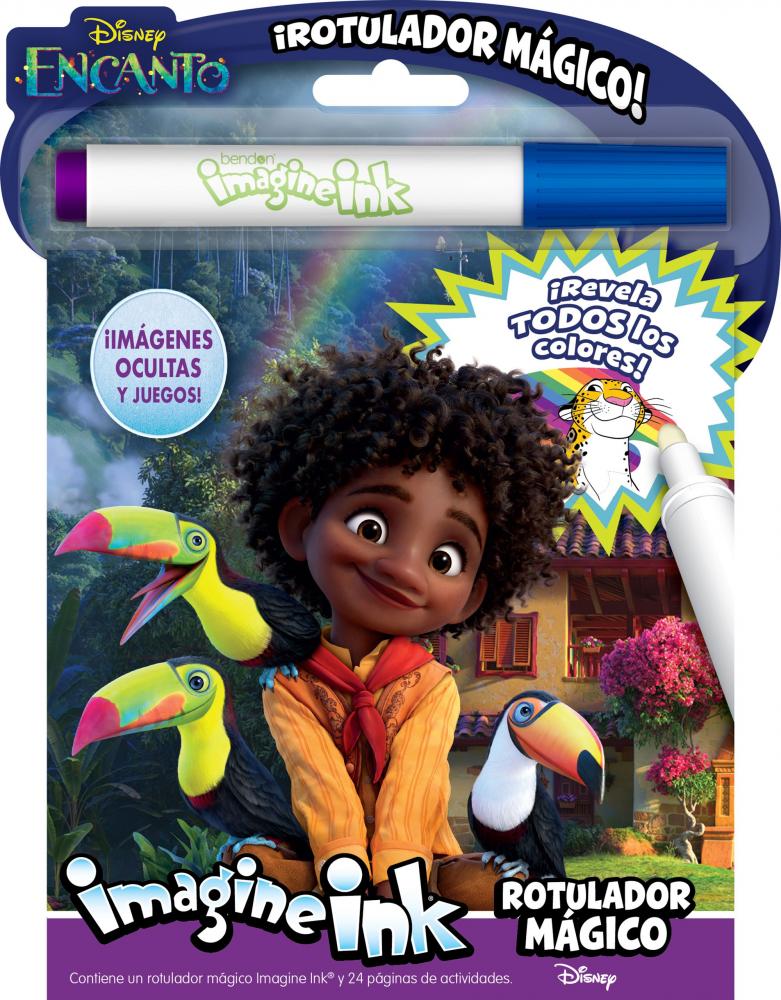 Utiliza el rotulador ma?gico invisible IMAGINE INK® para revelar todos los colores. ¡Descubre ima?genes secretas en cada pa?gina, completa los pasatiempos y colorea a tus personajes favoritos de Encanto!