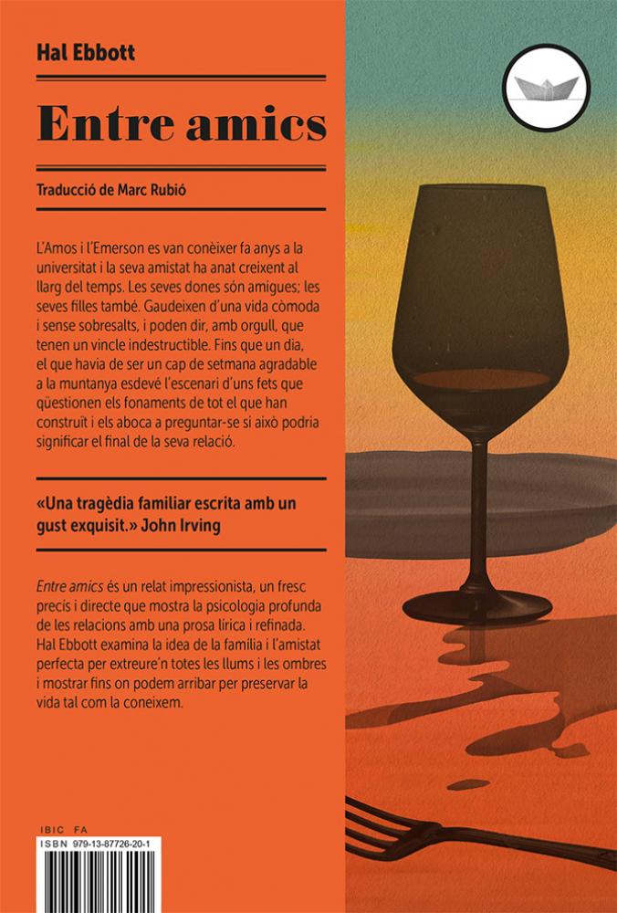 L?Amos i l?Emerson es van conèixer fa anys a la universitat i la seva amistat ha anat creixent al llarg del temps. Les seves dones són amigues; les seves filles també. Gaudeixen d?una vida còmoda i sense sobresalts, i poden dir, amb orgull, que tenen un vincle indestructible. Fins que un dia, el que havia de ser un cap de setmana agradable a la muntanya esdevé l?escenari d?uns fets que qüestionen els fonaments de tot el que han construït i els aboca a preguntar-se si això podria significar el final de la seva relació. Entre amics és un relat impressionista, un fresc precís i directe que mostra la psicologia profunda de les relacions amb una prosa lírica i refinada. Hal Ebbott examina la idea de la família i l?amistat perfecta per extreure?n totes les llums i les ombres i mostrar fins on podem arribar per preservar la vida tal com la coneixem.