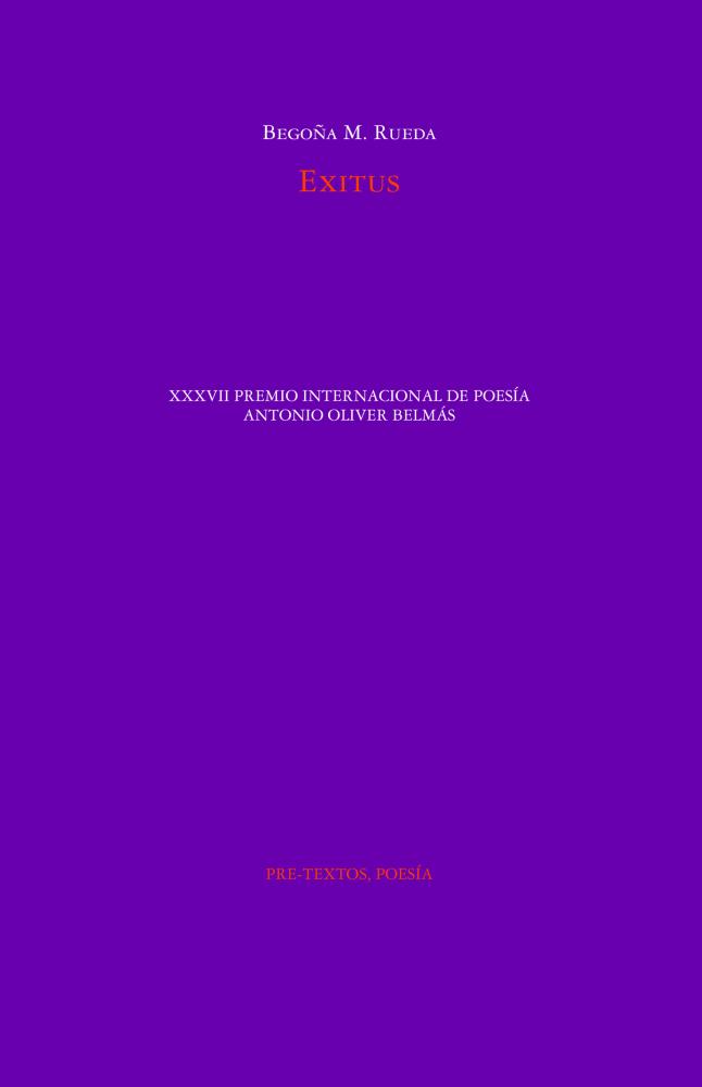 Exitus da nombre a la ramificación de poemas escritos bajo la luz desabrigada de un sistema público de salud mental que, por ninguneado, se ofrece mediocre, deficiente, con lamentables consecuencias para las personas que necesitan de su atención y que, con excesiva frecuencia, acaban obteniendo interminables esperas y hastío en respuesta. Son los versos de la mujer que sobrevive a la violencia de género y que vive para contarlo. Se trata del poemario de la muerte, casi obscena en su claridad, pero también de la esperanza inmediata como mano tendida que jamás traiciona. Se trata, sobre todo, de una obra esencial. No he abandonado la nada y convertido en mujer para soportar el cieno en la mirada de mis semejantes. Como mujer se me ha dado una espalda desnuda, no un paredón ni me place ser salpicada de sangre. Tampoco vine a esta vida para parecerme a la perla ni al oro viejo de los dedos de las señoras. Quise hacerme carne por un motivo que ya no recuerdo. El silencio es una hogaza de pan de la que mi memoria se alimenta alimento la tierra con la pobredumbre de las rosas secas caídas del cabello de la mujer que amo. La muerte es azul como las aguas de un mar maldito. Es algo que sólo yo percibo y me siento sola. egoña M. Rueda (Jaén, 1992) es autora de diez poemarios, todos y cada uno de ellos galardonados, entre los que destacan Error 404 (XLVI Premio de Poesía Ciudad de Burgos, Visor 2020), Servicio de lavandería (XXXVI Premio Hiperión de Poesía, Hiperión 2021) o La mujer okupada (XXIX Premio Ciudad de Córdoba Ricardo Molina, Cántico 2022).
