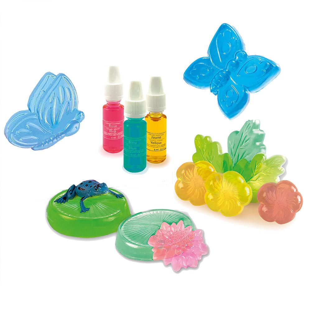 Este fabuloso kit contiene todos los ingredientes y utensilios necesarios para elaborar tus propios jabones con formas alucinantes: lirios de agua, flores de loto... ¡incluso mariposas! Sólo tendrás que derretir la base de glicerina al baño maría o en el microondas, añadir el colorante y aroma que prefieras, y verter la mezcla en el molde.