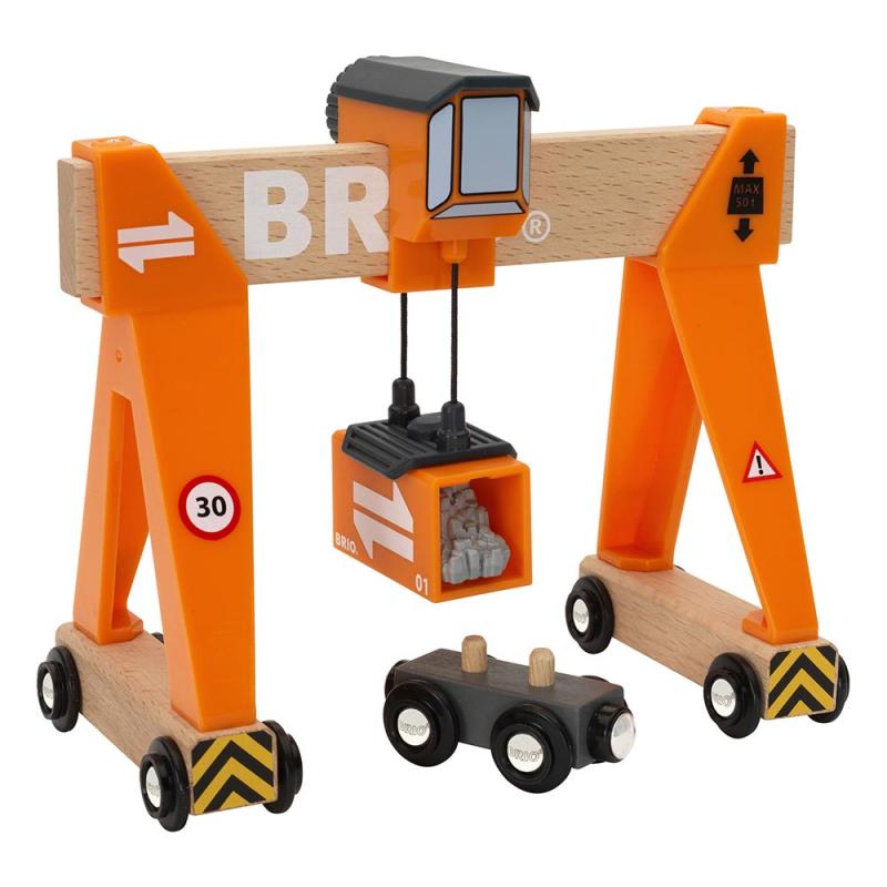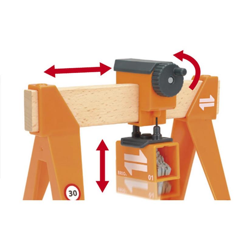 ¡Hoy tenemos un montón de trabajo! Coge tu grúa y llévala rodando a la zona donde hay que recoger la mercancía. Desliza la cabina superior con mecanismo magnético para que sea más sencillo trasladar la carga de un lugar a otro; para dejar los contenedores en su lugar, solo debes girar la manivela y depositarlos despacio. Ten cuidado, ¡la carga puede ser muy frágil!
