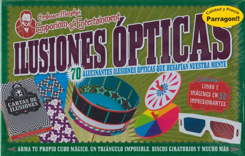 Preparate para una aventura vertiginosa con muchisimos enigmas visuales.Libro de trucos visuales, triangulo imposible, cubo que levita, 4 discos y una ruleta alucinantes, 54 tarjetas de ilusiones increibles, hexaflexagono, lentes 3D, zootropo animado, papel desconcertante... todo lo necesario para desafiar tu mente!.