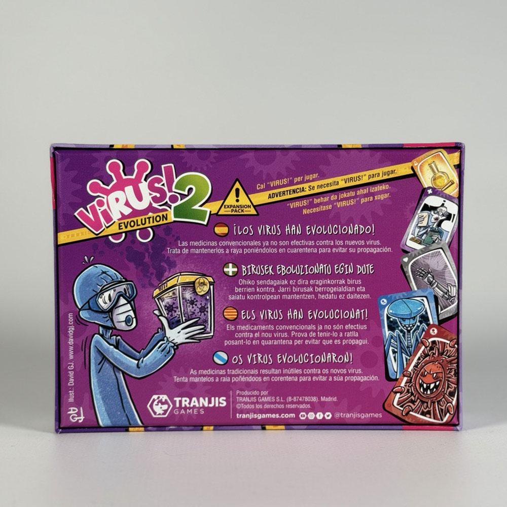 Esta expansión para Virus contiene 33 cartas y guía de juego en varios idiomas.