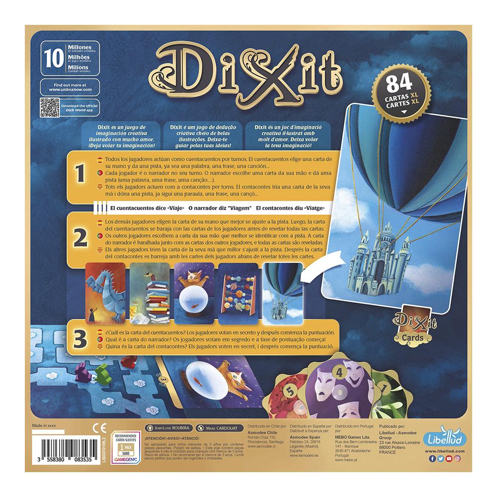 • El juego contiene 84 cartas ilustradas de gran formato, tablero de puntuación integrado en la caja, 6 peones de madera, 36 fichas para votar y guía de juego.