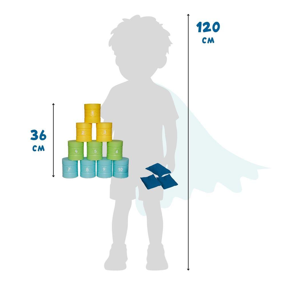 • Contiene 10 botes de colores y 3 saquitos para lanzar.
