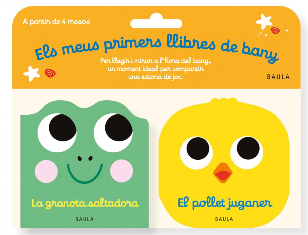 El bany és un ritual que el nadó adora i espera. És un moment especial de relaxació i joc per compartir. Cada pack inclou dos petits llibres il·lustrats perquè l'infant aprengui a anomenar i a reconèixer alguns objectes de joc i alguns animals.