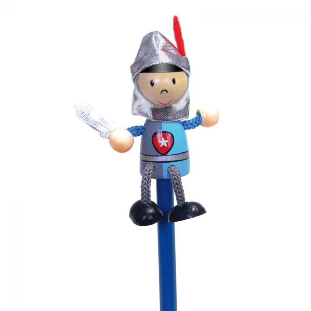 Lapicero de madera y tela pintado a mano con un caballero en la parte superior. Los pies de madera hacen un sonido de chasquido al golpear contra el lápiz. ¡También se pueden usar como marionetas! ¿Quién podría imaginar que los lápices de tu escritorio tendrían formas tan divertidas?