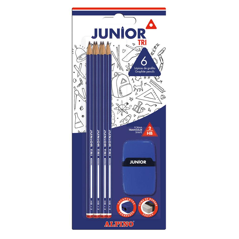 Lápiz grafito junior tri 6 unidades con afilalápiz y goma