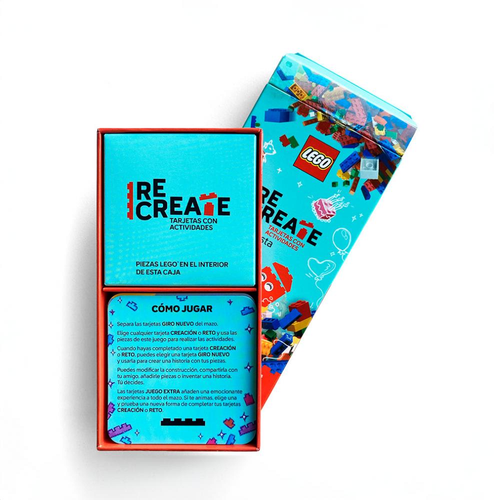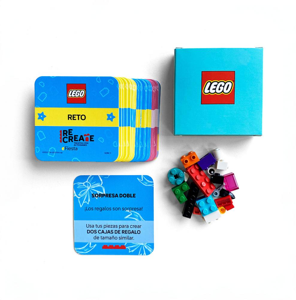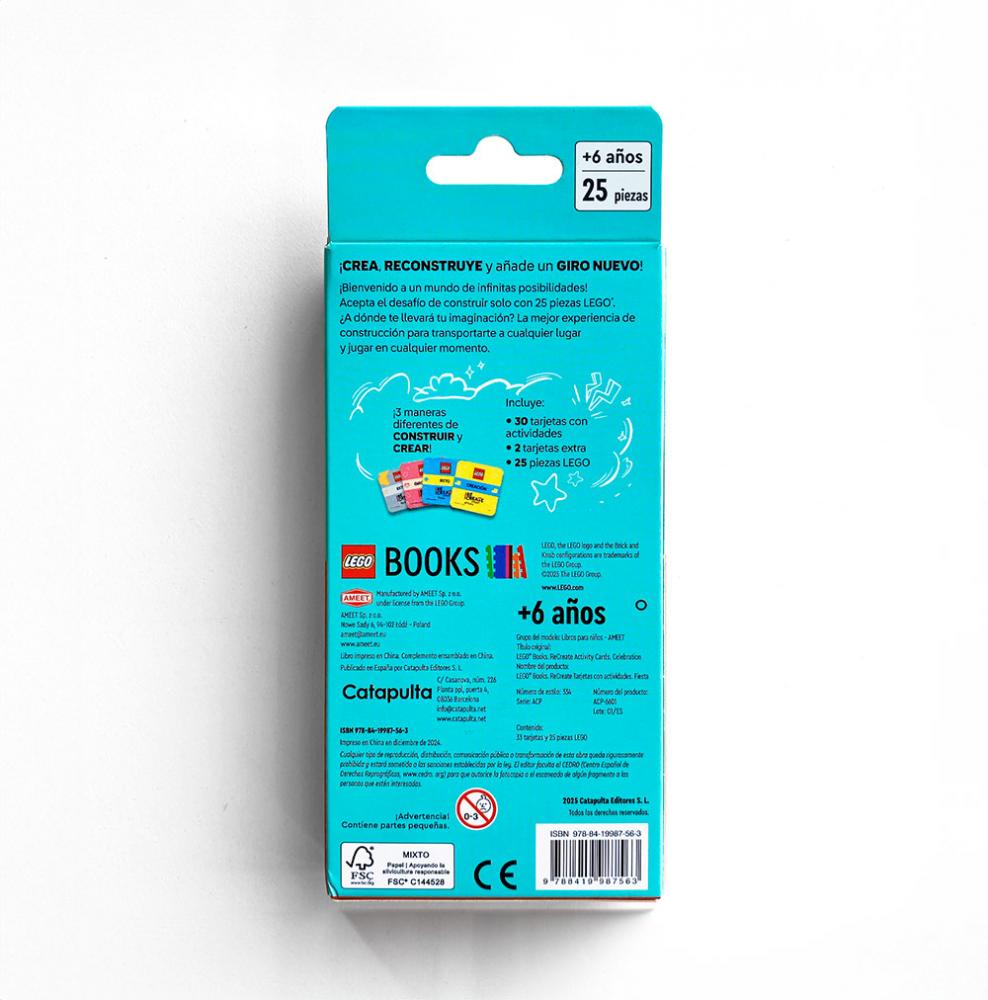 Contiene 25 piezas LEGO® y 32 tarjetas con actividades: 15 tarjetas Creación, 10 tarjetas Reto, 5 tarjetas Giro Nuevo y 2 tarjetas extra.