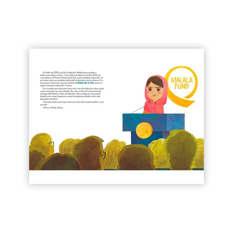Me llamo Malala Yousafzai y desde bien pequeña defiendo el derecho a la educación de todas las niñas y niños del mundo. Puede parecerte algo sencillo, pero no lo es: solo te diré que casi me matan por hacerlo. Aunque yo no desisto, y seguiré luchando hasta conseguirlo.