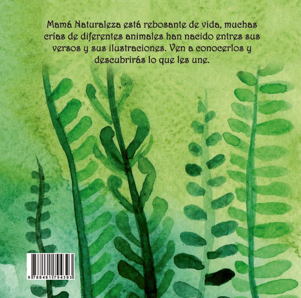 Mamá Naturaleza es un cuento rimado que te hace viajar por la maternidad a través del mundo animal. Trata sobre el vínculo tan especial que se establece entre las madres mamíferas y sus cachorros. Cada una de sus páginas muestra el amor, el apego, el disfrute entre una mamá y su cría o crías, desde la koala, pasando por la ballena, la chimpancé, la perra… hasta llegar a la mamá humana.