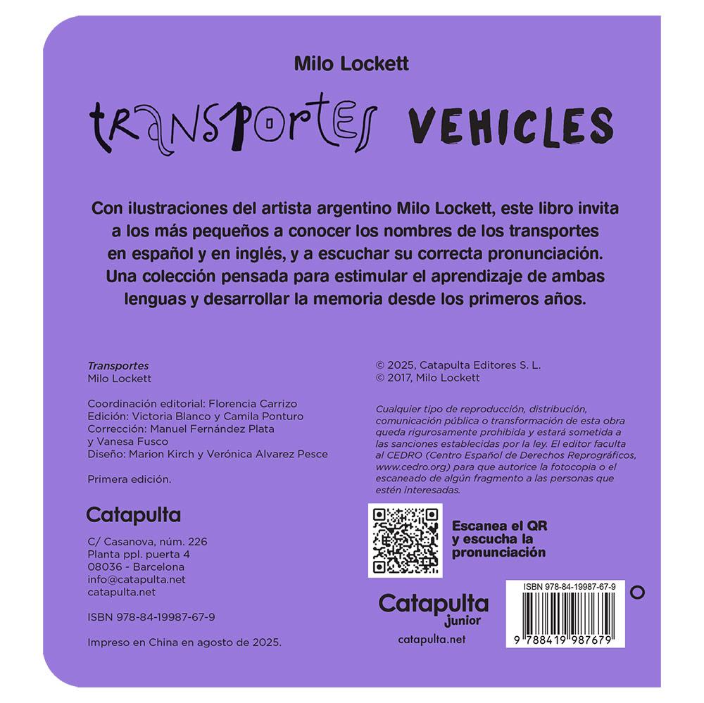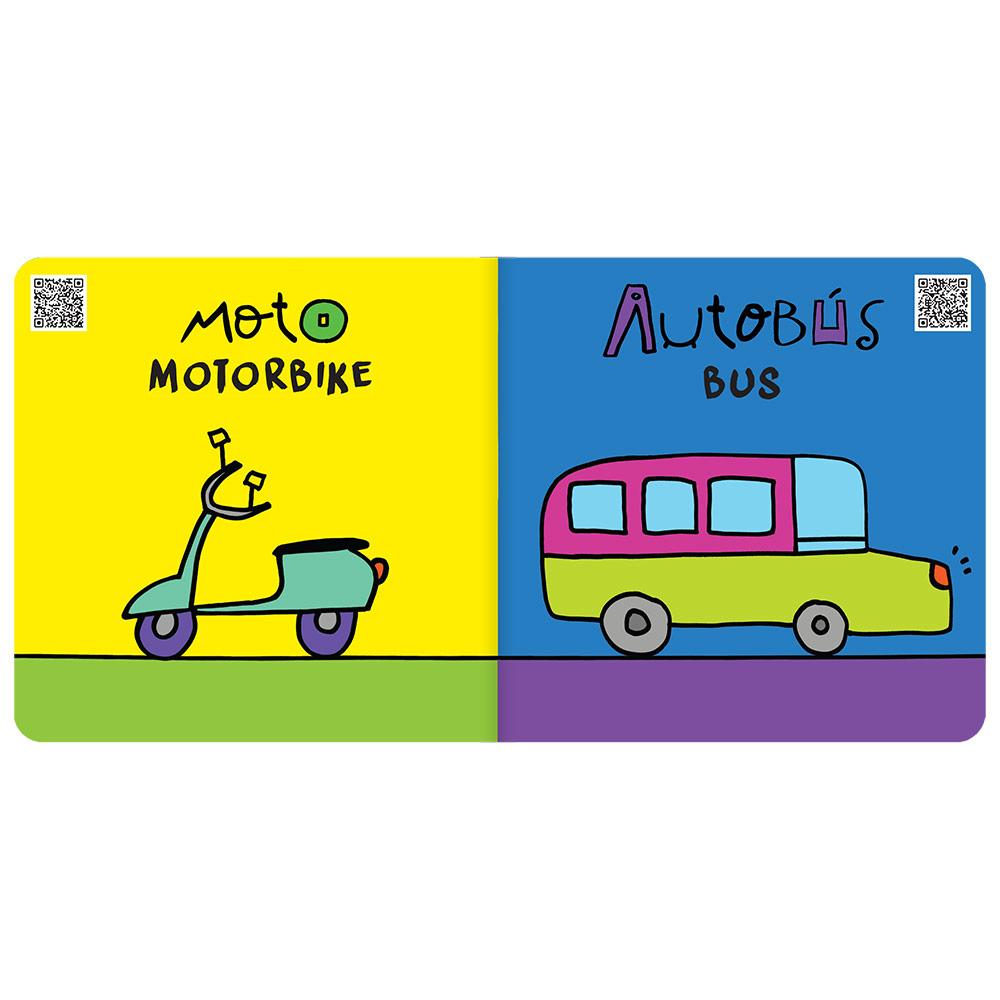 Los más pequeños descubrirán los vehículos con este genial libro, y aprenderán sus nombres en español y en inglés, y su pronunciación a través del QR incluido.