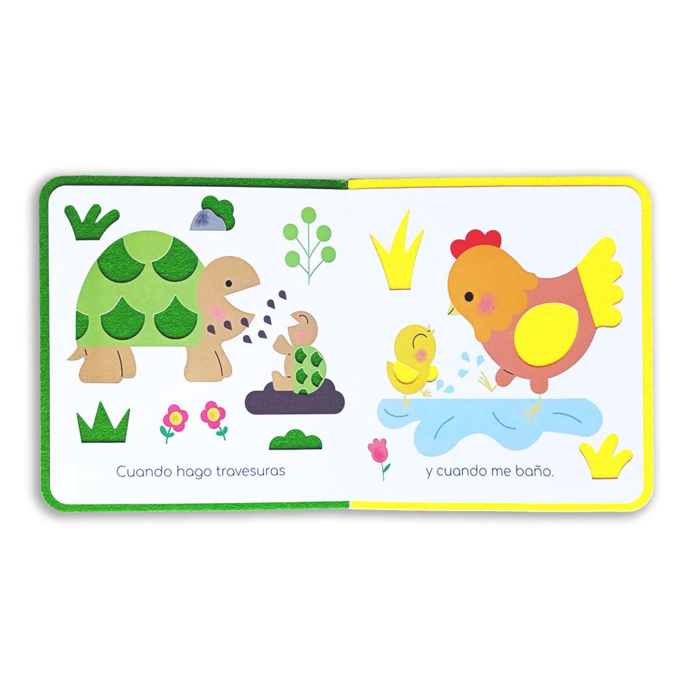 En cada página encontrarás adorables ilustraciones de animales con sus crías, combinadas con texturas, ideales para que tu bebé desarrolle sus sentidos.