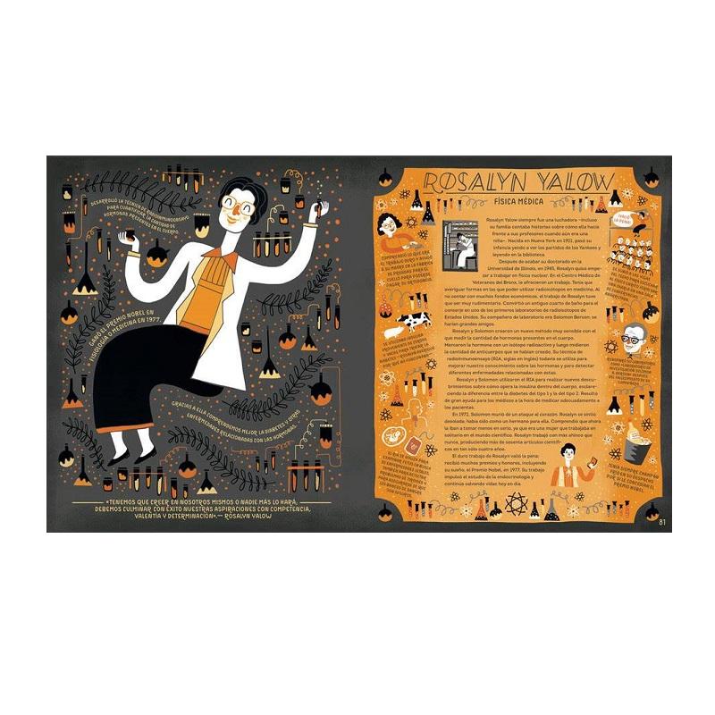Entre las pioneras incluidas en esta obra, están figuras conocidas, como Marie Curie y Jane Goodall, y otras no tan conocidas, como Rachel Carson, que ya a comienzos del siglo xx advertía sobre los efectos nocivos de los pesticidas en el medio ambiente y de la creciente contaminación, ¡historias realmente inspiradoras!