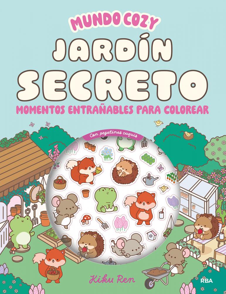 Acurrúcate en este encantador oasis con adorables dibujos de animales para colorear y una preciosa escena en el jardín secreto para completar con pegatinas.