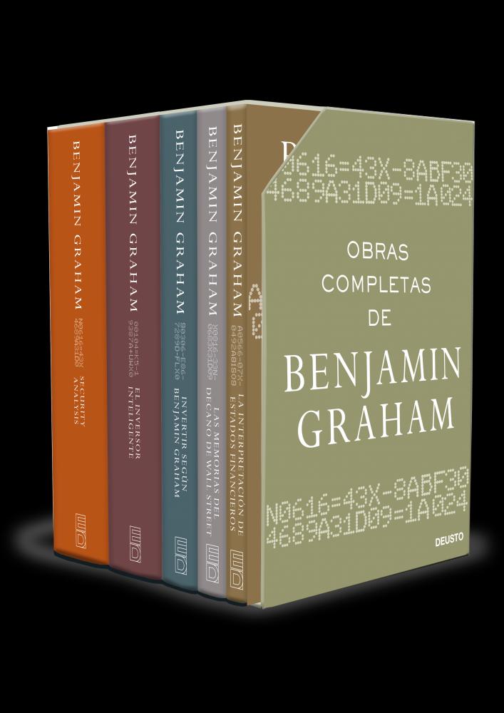Este pack incluye la obra magna del padre de la inversión en valor. Graham escribió tres de los textos fundacionales de la inversión neoclásica: Security Analysis (Deusto, 2023); El inversor inteligente (Deusto, 2022), que fue publicado en 1949 y que a lo largo de los años se ha convertido en uno de los clásicos imprescindibles que todo inversor debe leer al menos una vez en su vida; una valiosa colección de artículos, Invertir según Benjamin Graham (Deusto, 2022) y La interpretación de estados financieros (Deusto, 2022), escrito con la colaboración de Spencer B. Meredith. Escribió, asimismo, su autobiografía: Las memorias del decano de Wall Street (Deusto, 2023).