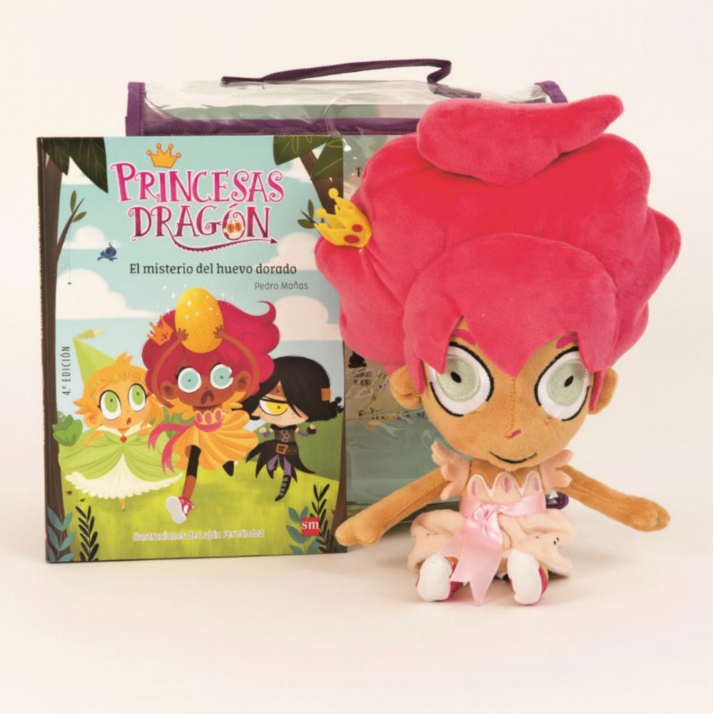 Un pack con un título de la colección Princesas Dragón: El misterio del huevo dorado , y además, una muñeca que representa a Bamba, la más aventurera de las princesas.