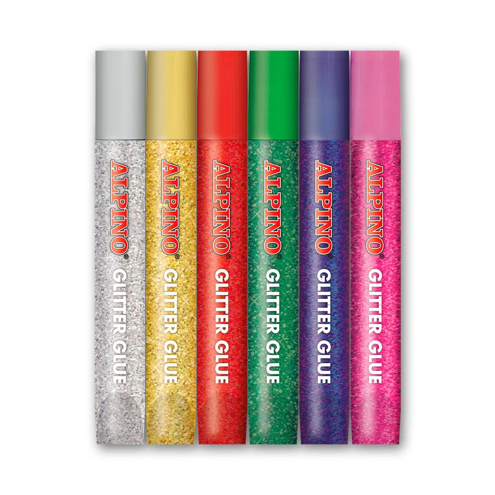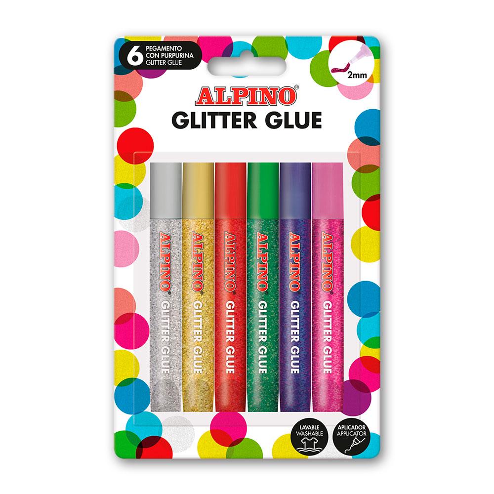 Pegamento con purpurina y aplicador 6 colores alpino