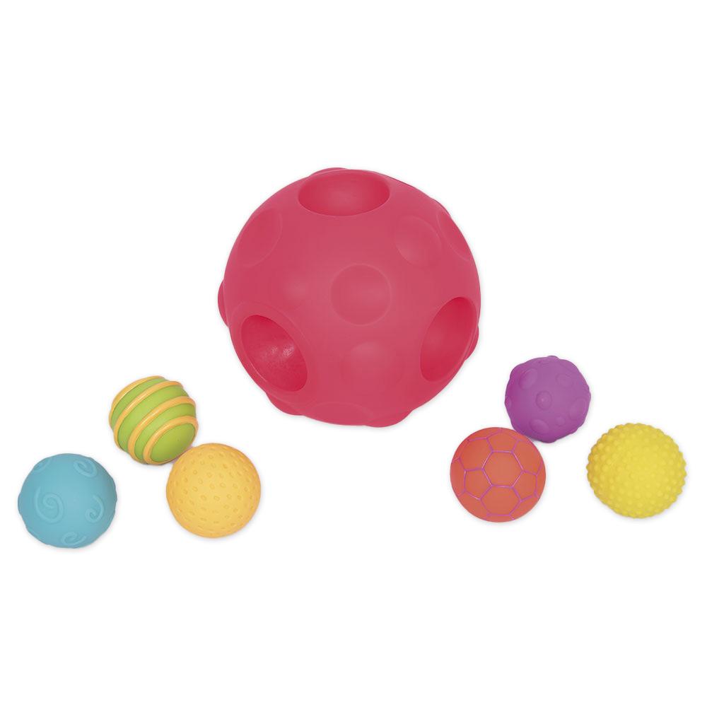 • Contiene una gran bola con 6 pelotas más pequeñas de diferentes colores, texturas y tamaños.