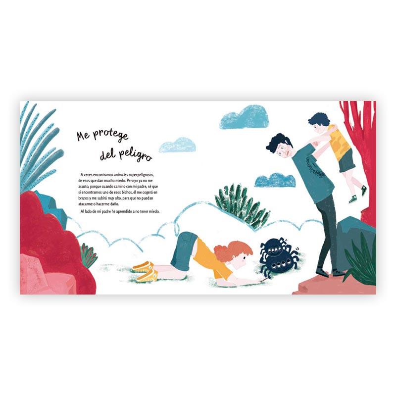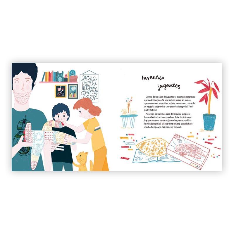 «Mi padre no necesita ponerse un traje especial para hacer magia. Mi padre es un superhéroe con los poderes que más importan. Espanta monstruos, me enseña a volar alto y me cura con tiritas mágicas. Son poderes pequeños, grandes, enormes... ¡Deja que te los muestre!»