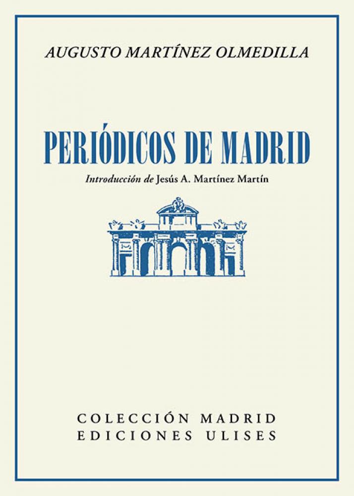 Miembro de la Generación del 14 y de la también llamada promoción de El Cuento Semanal, Augusto Martínez Olmedilla (Madrid, 1880-1965) es un autor hoy en día olvidado pero de indudable interés como narrador y biógrafo. Como narrador fue uno de los más prolíficos y apreciados proveedores de novelas cortas para las múltiples colecciones de este género que aparecieron entre 1907 y 1936, aunque también cultivó insistentemente la novela larga con interesantes matices galdosianos, ya que fue una gran seguidor del novelista canario. Mantuvo también una larga carrera periodística en multitud de periódicos y revistas gráficas, por lo que conocía perfectamente el género. Periódicos de Madrid, pese a los años transcurridos sigue siendo una bieninformada y amena mirada a la prensa madrileña del siglo XIX y primer tercio del siglo XX. Esta edición se enriquece con una excelente introducción de Jesús A. Martínez Martín, Catedrático de Historia Contemporánea de la Universidad Complutense. A.L.