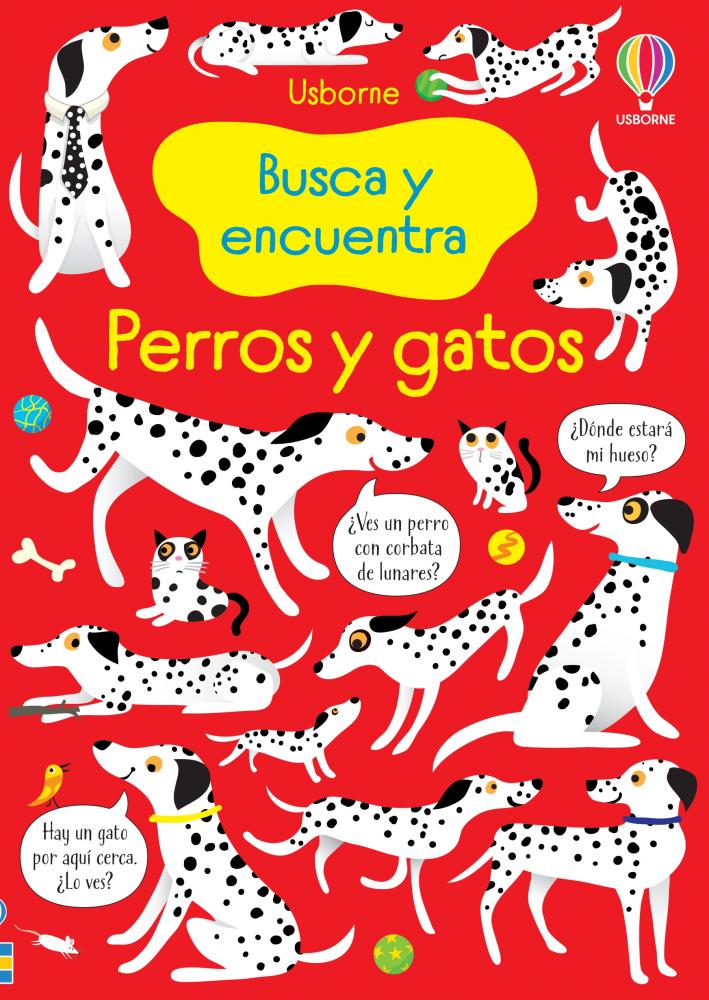 Un libro de libro de actividades con divertidas ilustraciones donde figuran multitud de objetos y animales que los niños tendrán que encontrar, contar, emparejar, como un cachorrito morado, un perro en un monopatín o un gato bailando claqué.