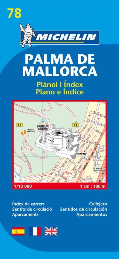 Encuentre todas las informaciones prácticas para recorrer Palma de Mallorca a pie, en coche o en bicicleta. El plano MICHELIN Palma de Mallorca, a escala 1/10 000 (1cm = 100m), es ideal para recorrer los barrios de la ciudad. Para completar la información incluye transportes, sentidos de circulación, localización de monumentos, así como un anexo con el índice de calles. Incluye signos convencionales en castellano, inglés y francés.