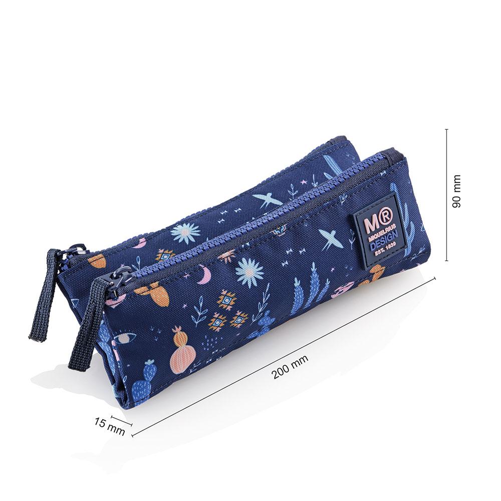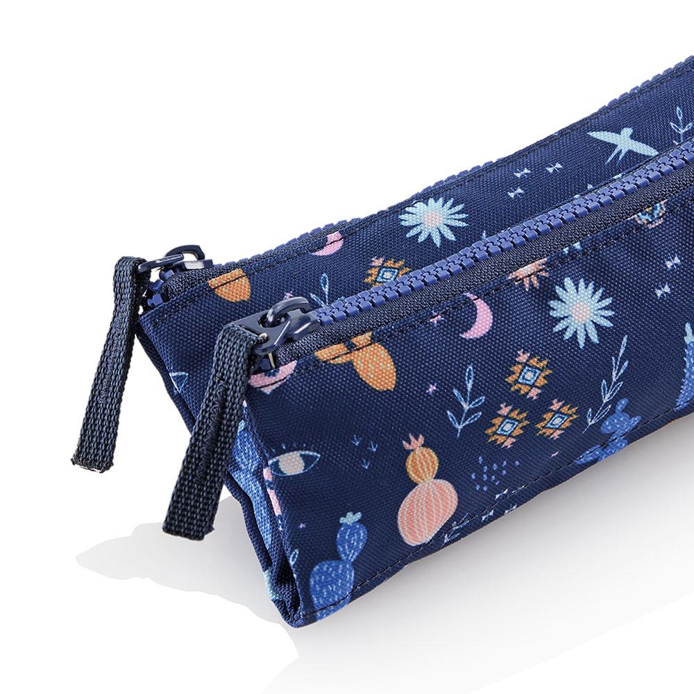 Gracias a este portatodo doble mini con diseño Desert fantasía sobre fondo azul cielo, siempre podrás llevar contigo tus materiales de escritura preferidos. ¡Las tareas del día serán pan comido!