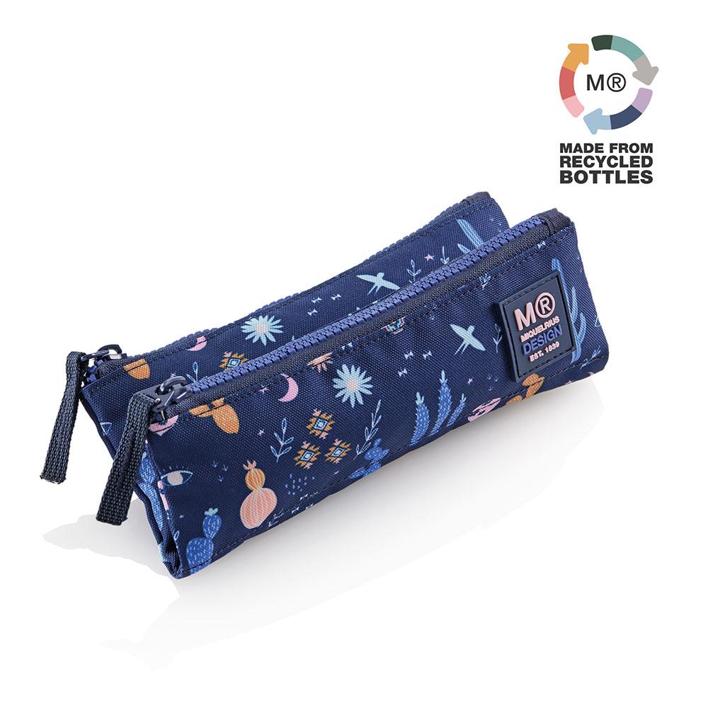 Portatodo plano con dos compartimentos. Está realizado en su totalidad en resistente poliéster reciclado (RPET). Nos unimos a la lucha contra el exceso de plásticos en los océanos.