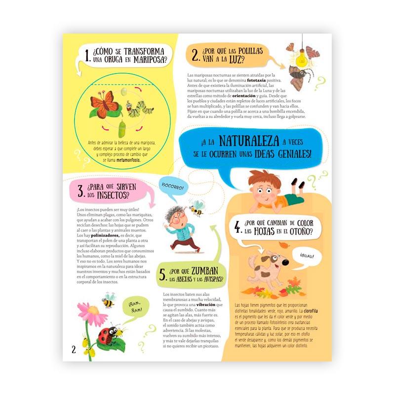 Este libro nos hace 80 preguntas variadas con sus respuestas sobre la naturaleza, el tiempo, el universo y el cuerpo humano. Las ilustraciones acompañan e ilustran los contenidos de cada pregunta. En cada doble página hay alguna solapa o pestaña para interactuar con el libro.